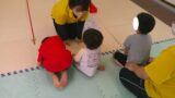 リズムに合わせてゴーストップ(フープに入れ)・2本のロープでジャンプ!