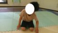 クマで横歩き!!平均台が手、フープの中が足!!反対にしても挑戦しました!!