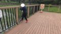 平均台の鉄橋と水たまりを踏まないようにクマさんで進んで