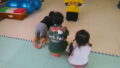 箱に戻したら、大きいボールに変えタオルに乗せて引っ張ったり