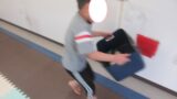 平均台を落ちないように進んで、青マットで体ジャンケン!!