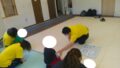 転がってきたバランスボールを受け取って、転がして進もう!!