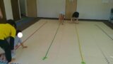 帰り道に平均台とフープの道を走り抜けるお友達も、