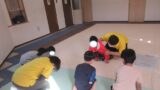 最後の活動は、2チームに分かれて、雑巾掛けでレース対決!!