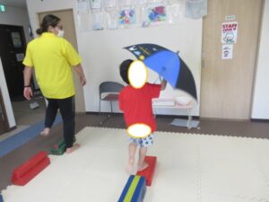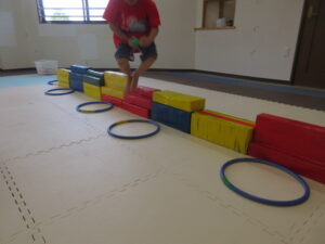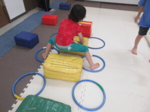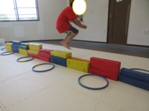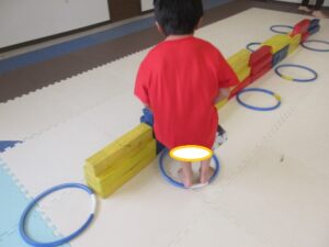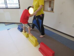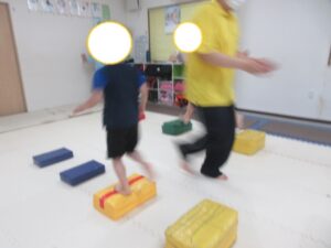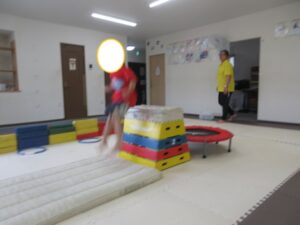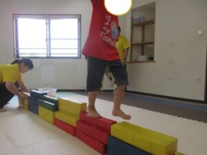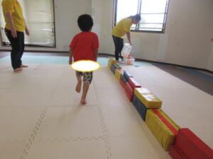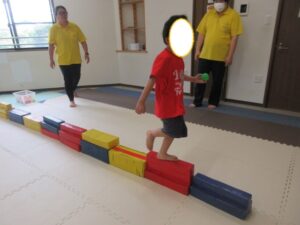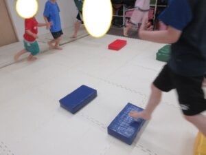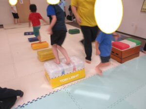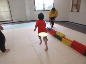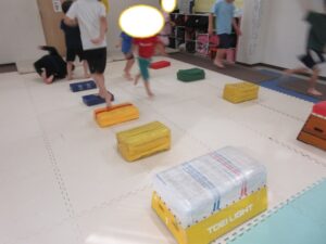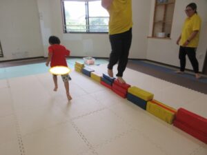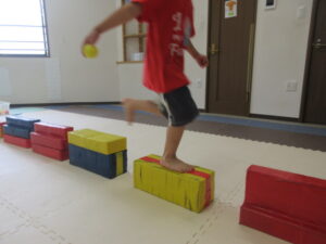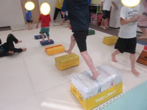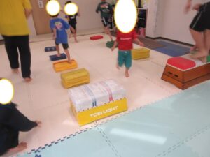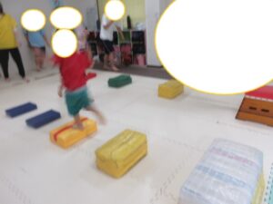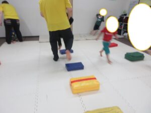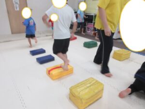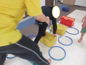 障害物の上をみんなバランスを上手く取って10分間元気に走る事が出来ました😄