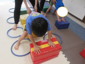 高さに苦戦しているお友達もいましたが先生と一緒に頑張りました👏