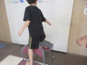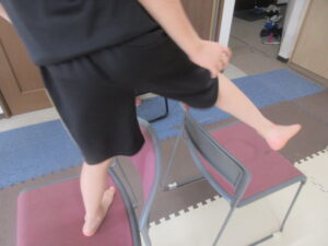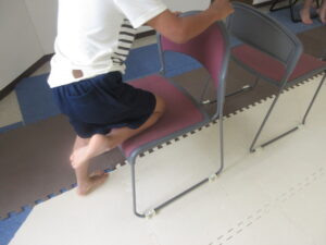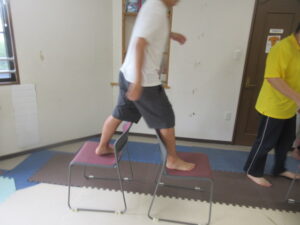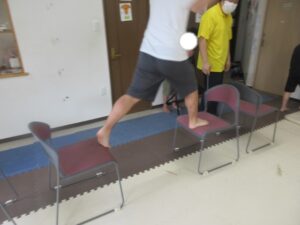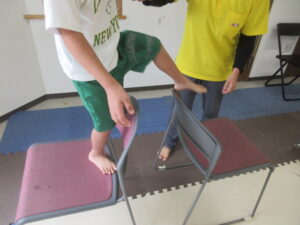 イス渡りをして進み、壁を使って足を上げて10秒!!!