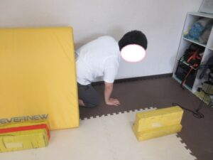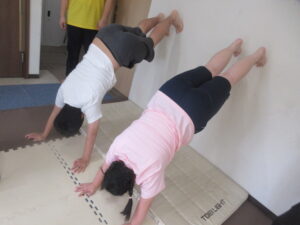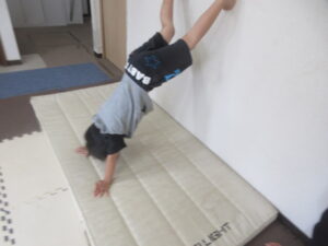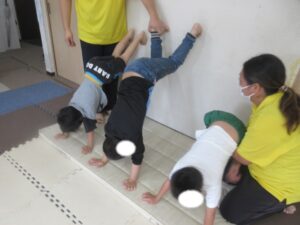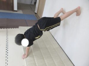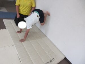 最初の活動は歩いて進んで、壁倒立をして、