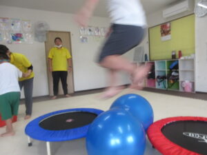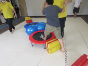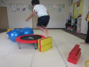 トランポリンで少し勢いづいてしまう事もありましたが