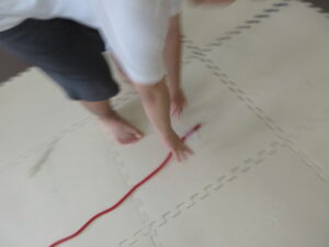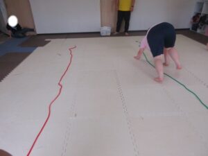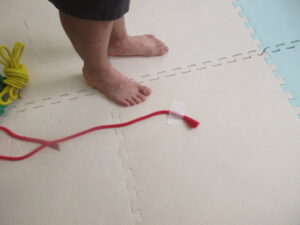 テープをちぎって、ロープでコースを作ってくれましたよ^^