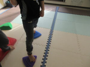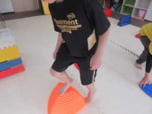 こちらのコースのお友達は、平均台をサスケの様に片足ずつ乗せて走り抜けよう!!