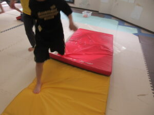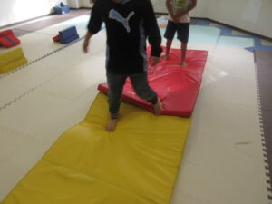 ハードルジャンプしたら、マットの山道を上り下り👣