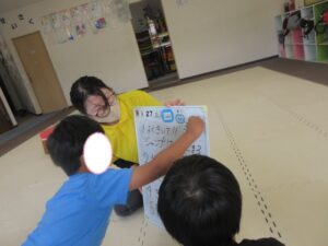 今日は、お友達が少ないから、みんないつも以上に大きな声でご挨拶してね♪