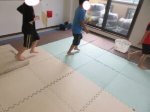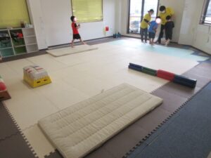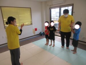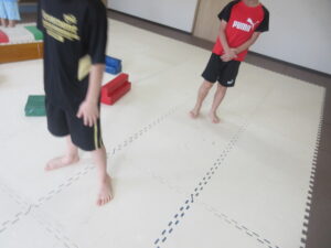一つ目の活動は、『良ーく聞いて👂 ジャンプ・走る・止まる』