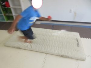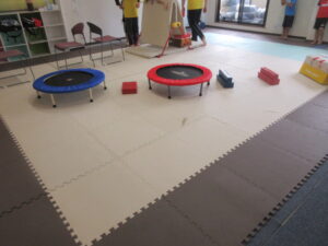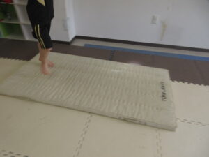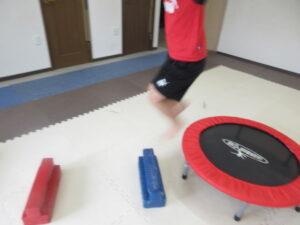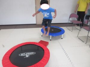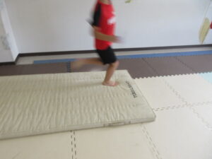 反対側まで進めたら、トランポリンから、リズム良くジャンプして戻ってきてね!!