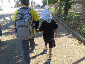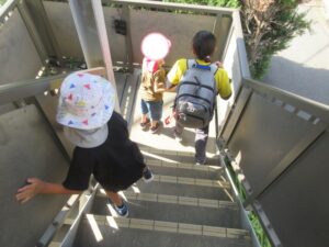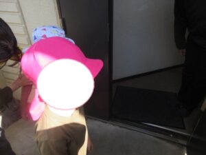 お留守番の先生に元気に「行ってきます!」のご挨拶をして
