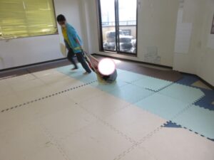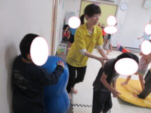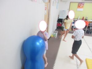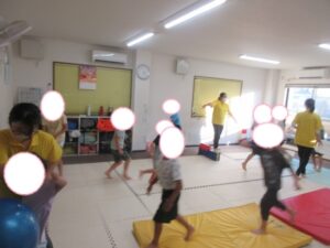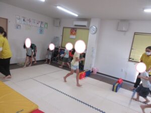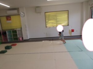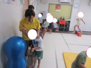 こちらのコースのお友達はマットの上を走ったらバランスボールにタッチ★