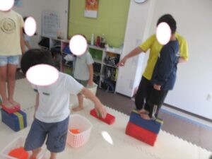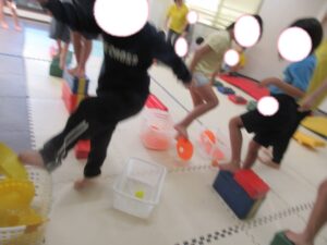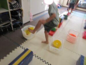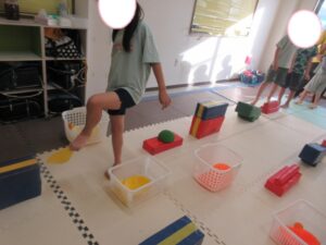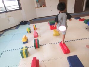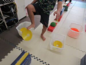 こちらのお友達は障害物を跨ぎながら時間内でどんどんボールを運ぼう★