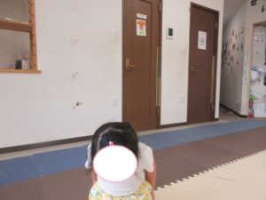 鉄棒の下をくぐっていくから頭をぶつけないように気を付けようね(^_-)-☆