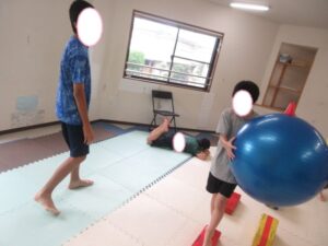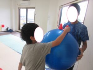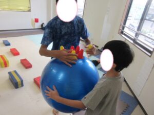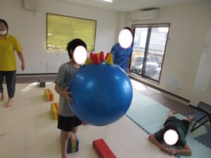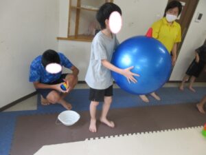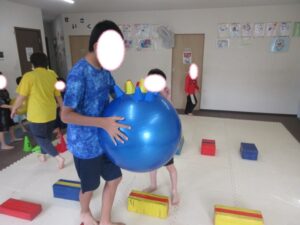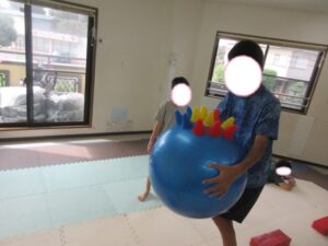 お昼ご飯の後にバランスボールや絵本を読んで過ごした後には