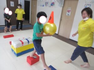 こちらのコースはボールにコーンを乗せて運びましょう!