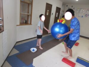 もしもコーンが落ちてしまったらペアのお友達に助けてもらおうね♬