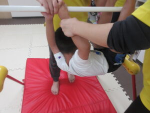 鉄棒は、はじめは先生の補助が必要だったお友達も