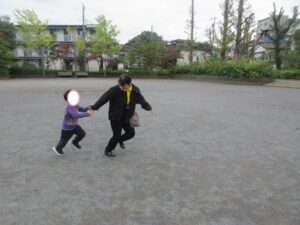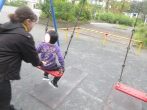 お友達を保育園にお見送りした後、近くの公園で遊びました(*^-^*)