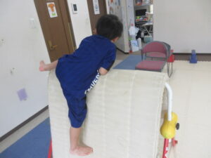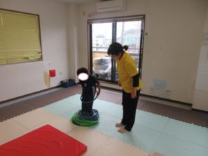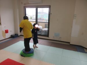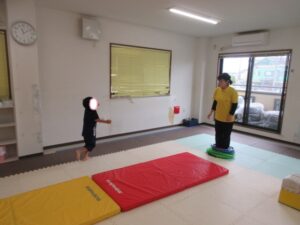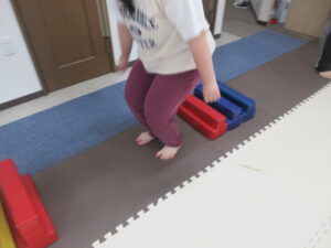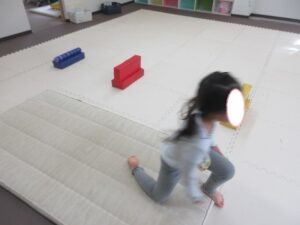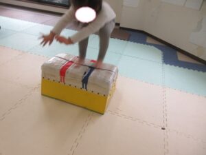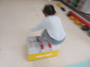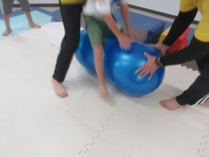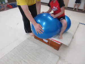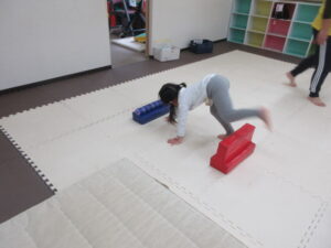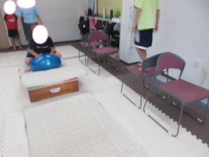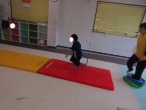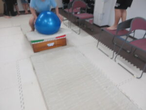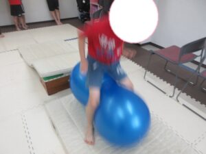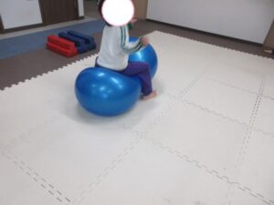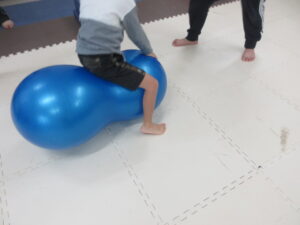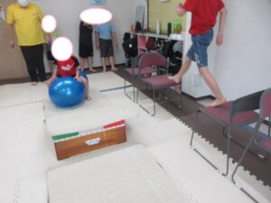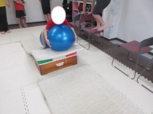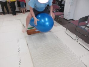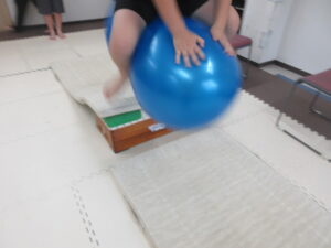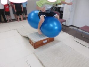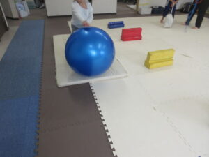 こちらのコースのお友達は、ピーナッツボールで坂道を登ってジャンプ★