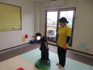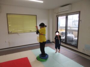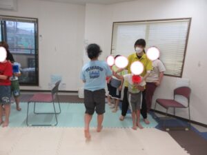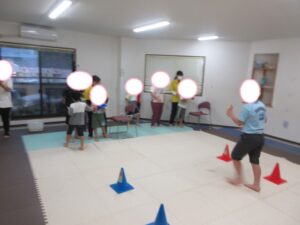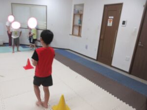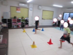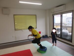 順番を待つ人はフープの中で待って前の人とハイタッチをしたらスタート✨