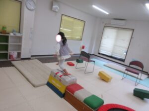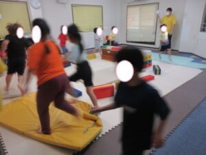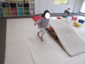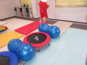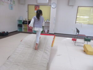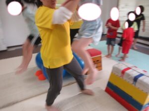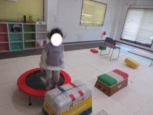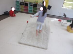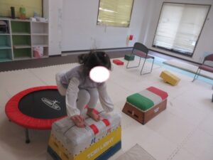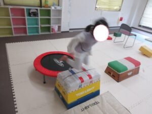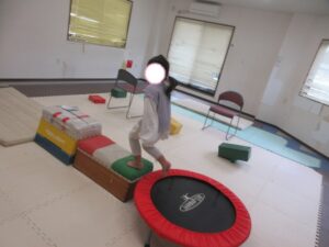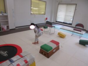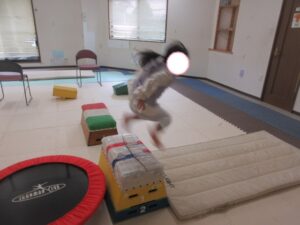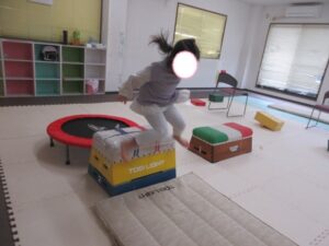 帰り道もトランポリンを使って高めの跳び箱で同じように乗っておりて・・・