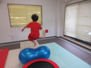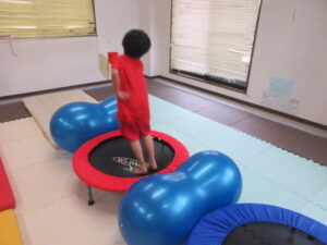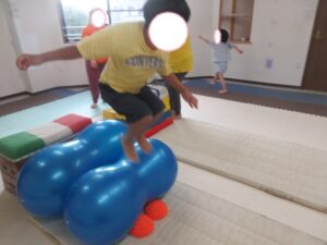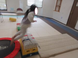 トランポリンで勢いをつけて上手に跳べていました!(^^)!