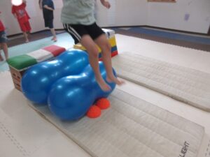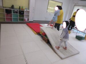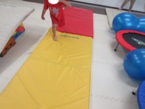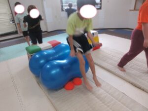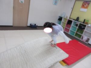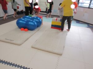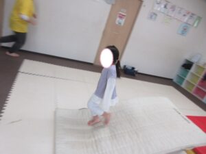 まずは前転をした後にバランス歩き!