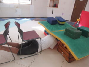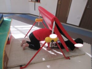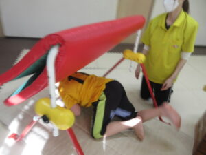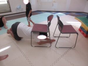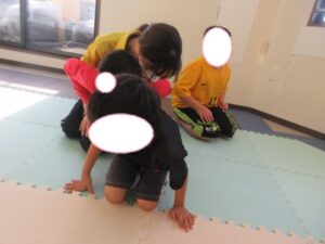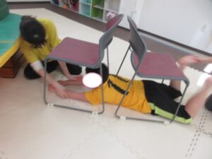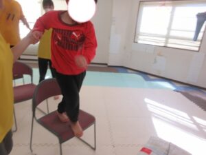 どんなふうに渡っても良いルールでしたが、お友達が選んだのは上を歩いて進む方法!