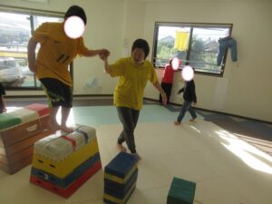 みんなでサーカスの綱渡りの様に進んで行きました!!