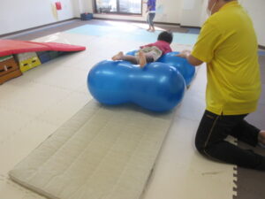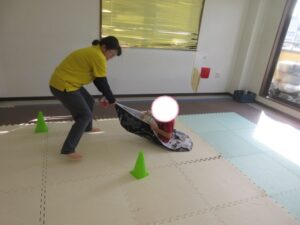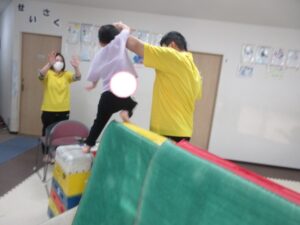 振り落とされないようにしっかりとタオルを握ることができました😊