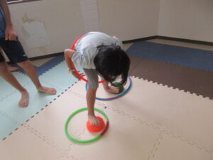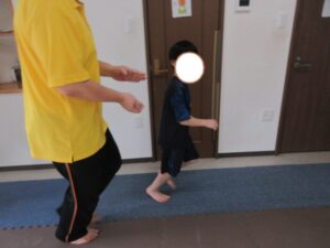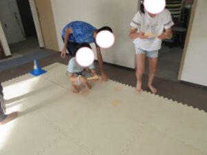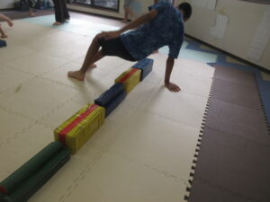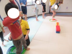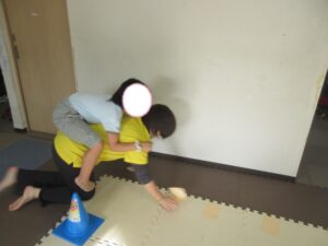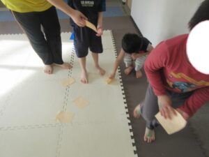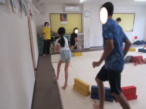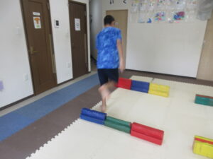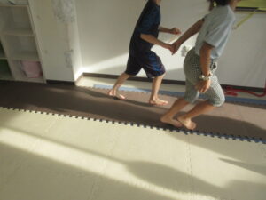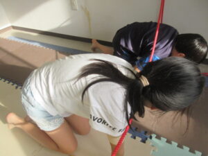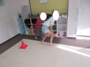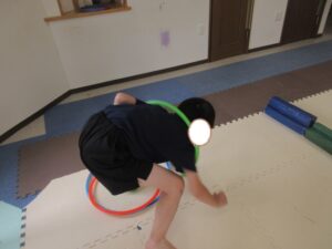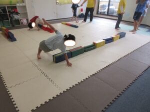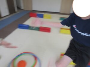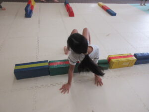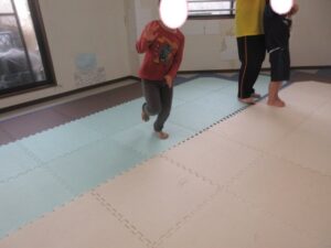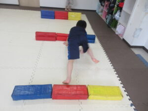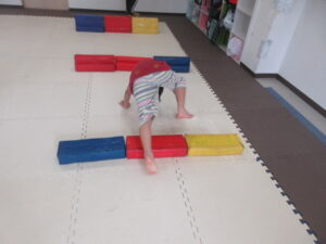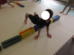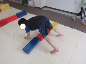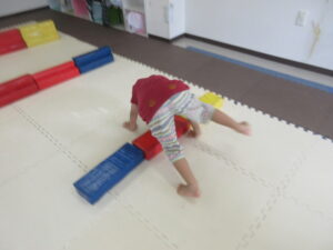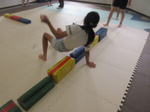 乗らないように、しっかりと手、足を上げて進んでいく事を頑張りました☆