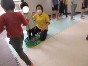 次はフープリレーです!!