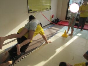 こちらのチームは、障害物をくまさんで進みました!!