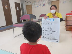 みんなで午後のご挨拶、「こんにちは」「お願いします」
