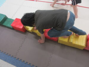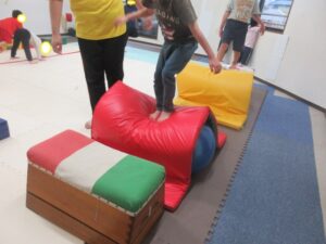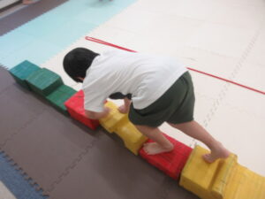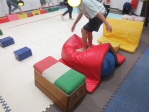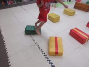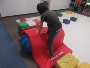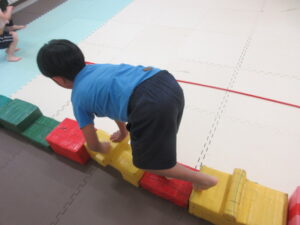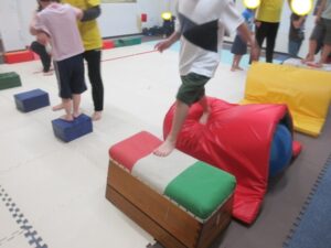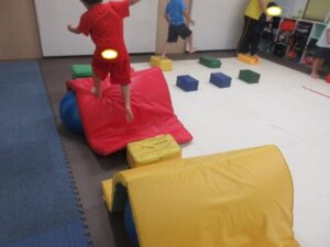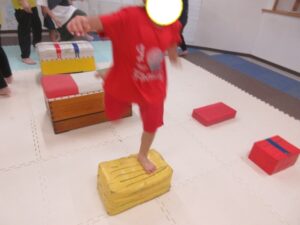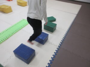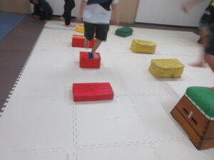 それぞれのコースに用意されている、平均台や跳び箱の上を走って