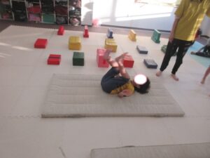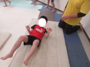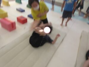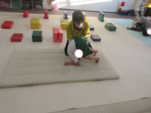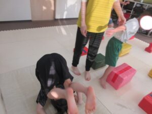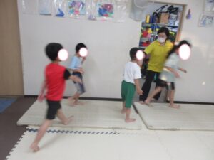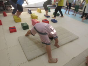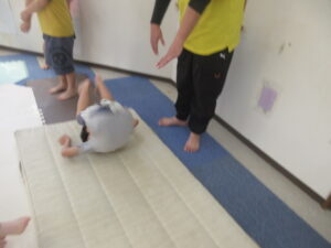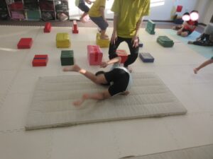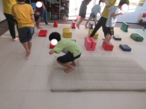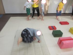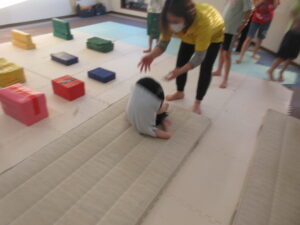 マットで前転・後転をして進むよ♪