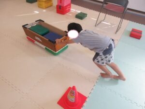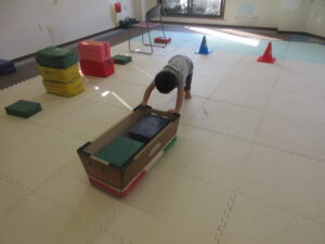 重りの乗った跳び箱を押して反対側まで進もう(^O^)/