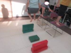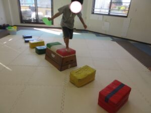 跳び箱→平均台を島ジャンプで机があるところまで進もう(*’ω’*)