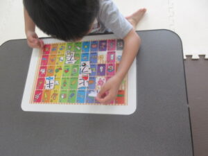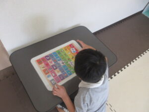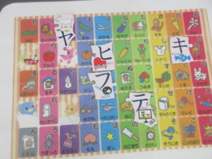 机の上には、平仮名表が置いてあるので、持って行ったカタカナと同じ平仮名の上に