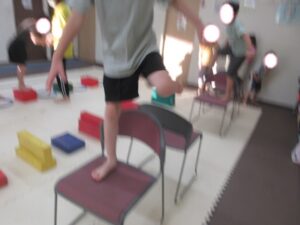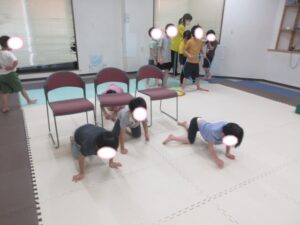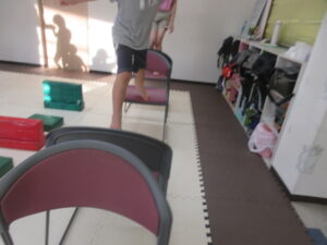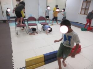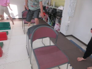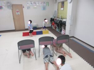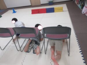 こちらのコースのお友達は、椅子をくぐって障害物走ε≡≡ヘ( ´Д`)ノ