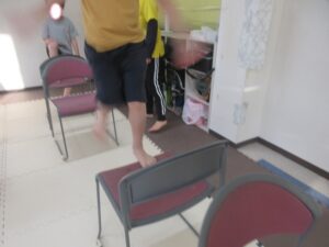 反対側前進んだら、椅子の上を跨いで戻ってね👣