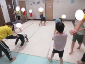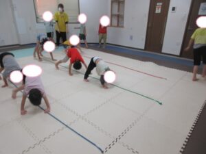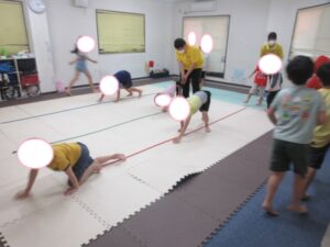 10分間、みんなで空いているロープをクマでダッシュ💨