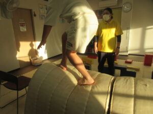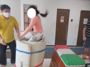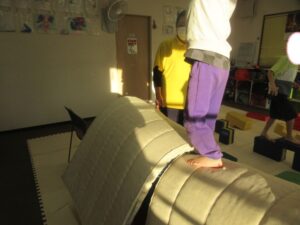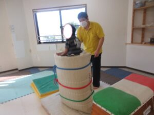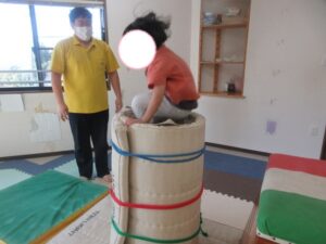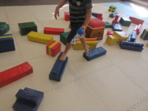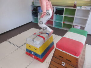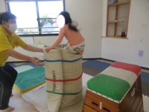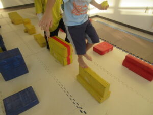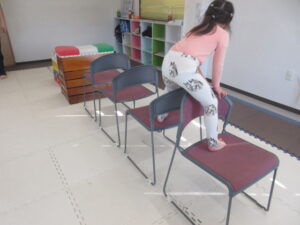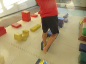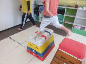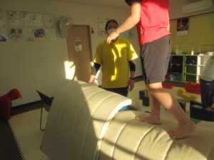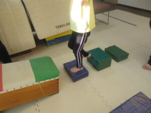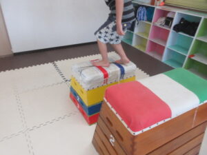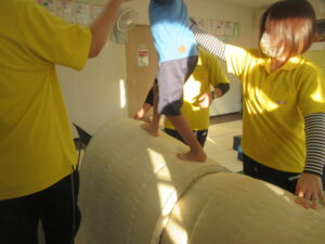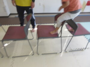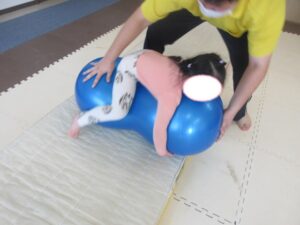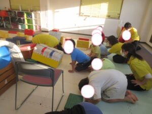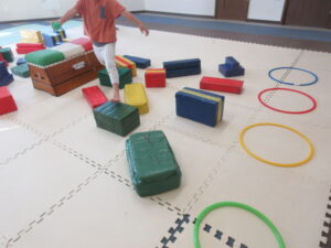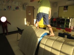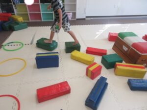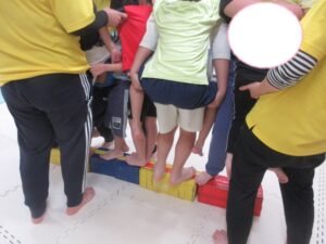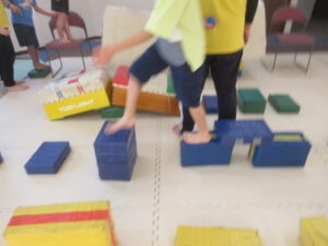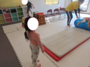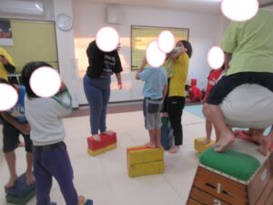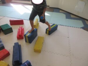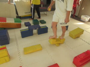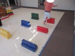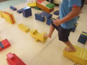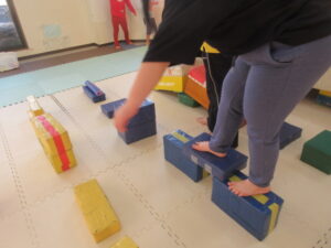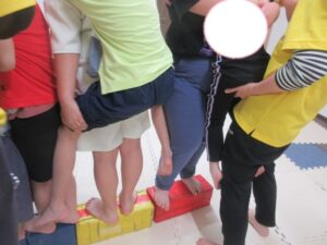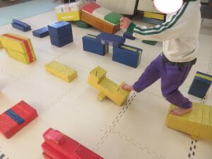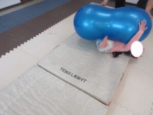 バランスボールでできたグラグラ道を、落ちない様に歩いて進もう(^O^)/