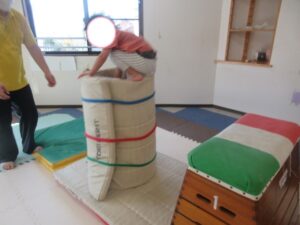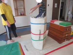 跳び箱から筒状のマットの中に飛び込もう🔥